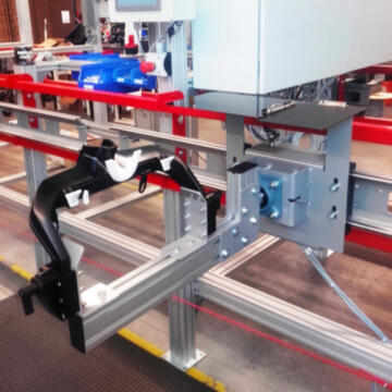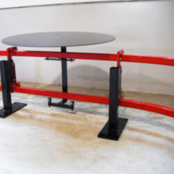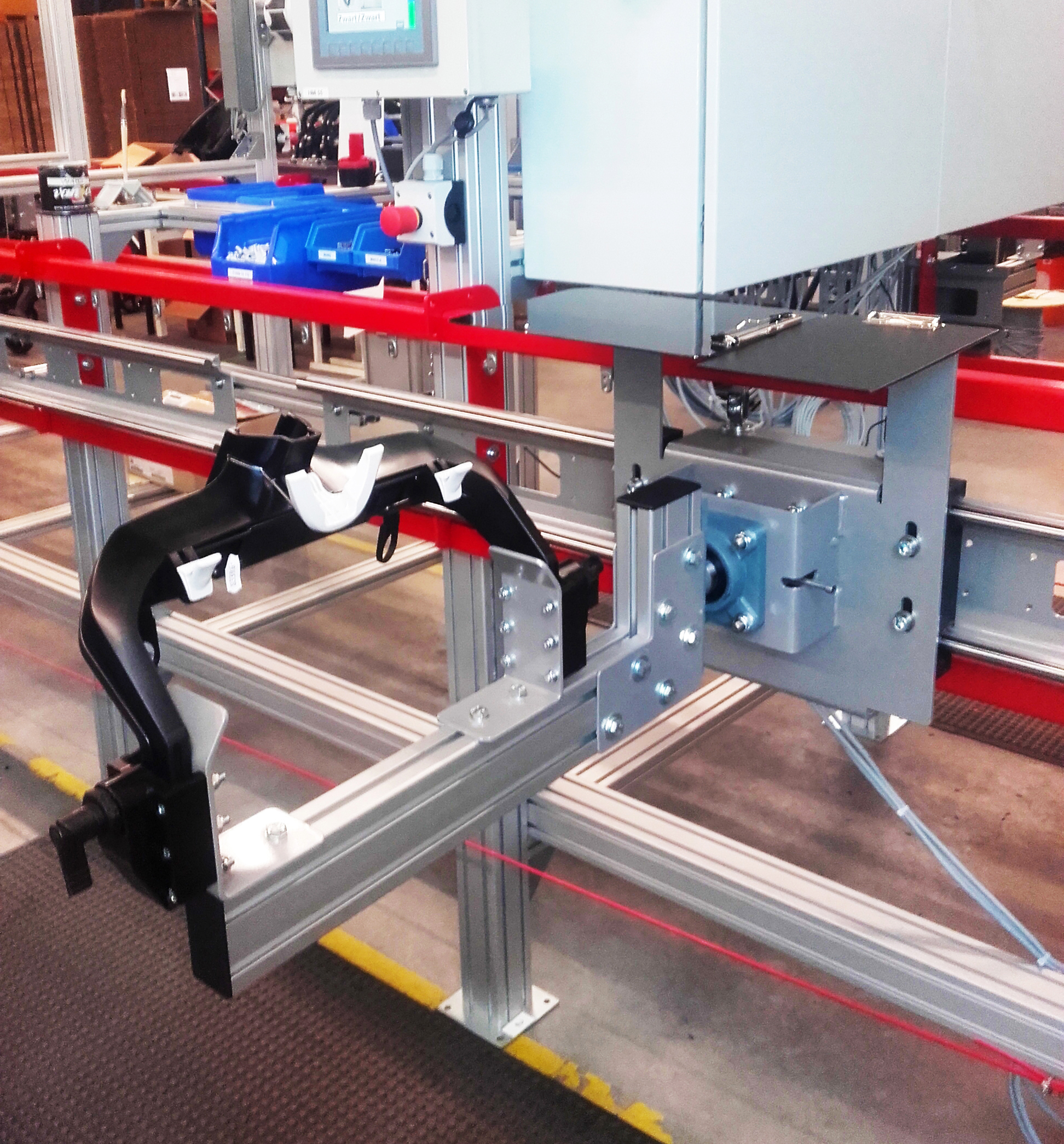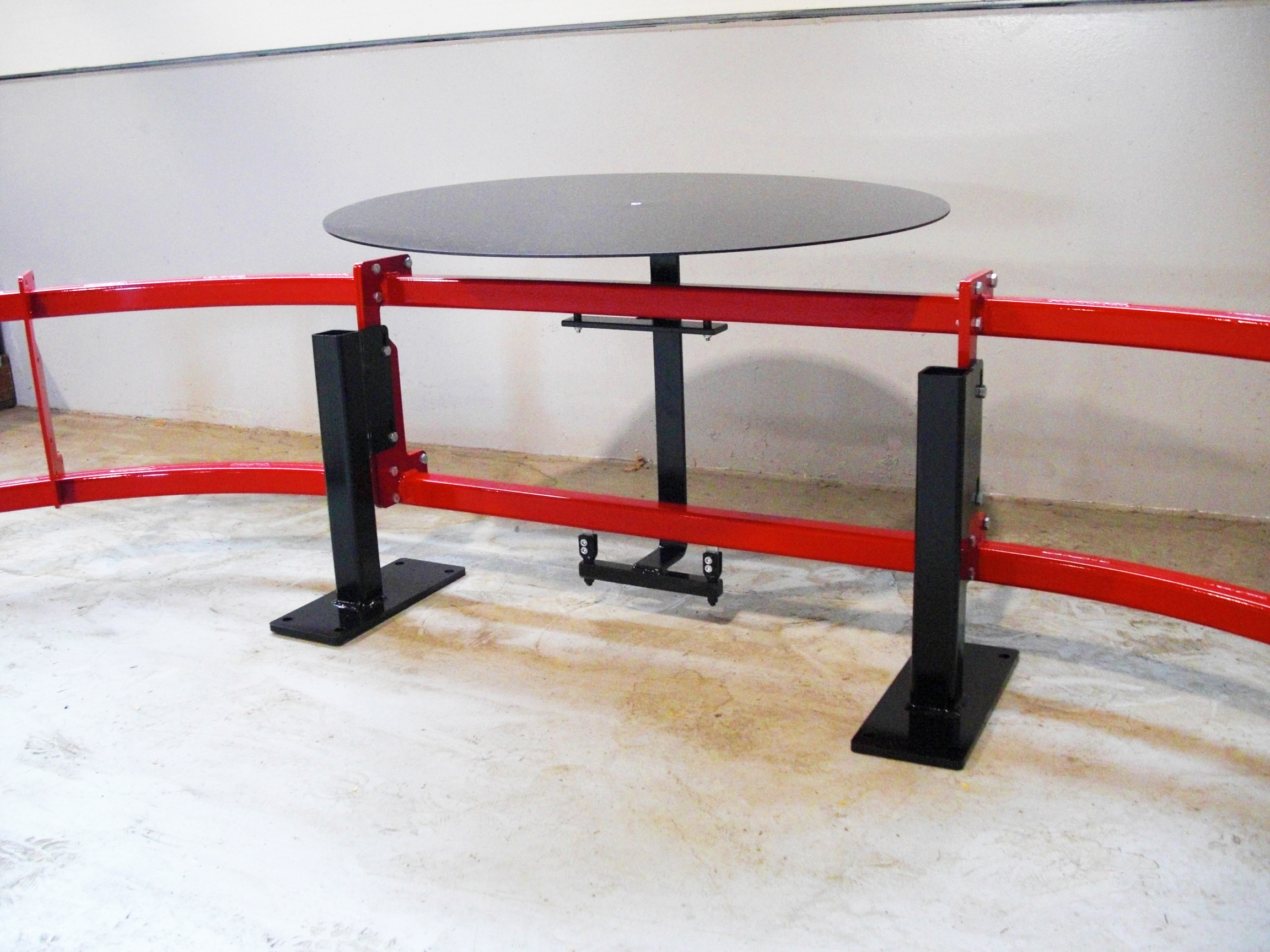 A number of different types of floor conveyor are available depending on the load and operational mode. They have two things in common, namely, the cardan chain runs in a steel track and the load is positioned above the track. The floor conveyor is fitted on floor mounted pillars and the load can be rotated or indexed. The floor conveyor can be operated continuously or intermittently.